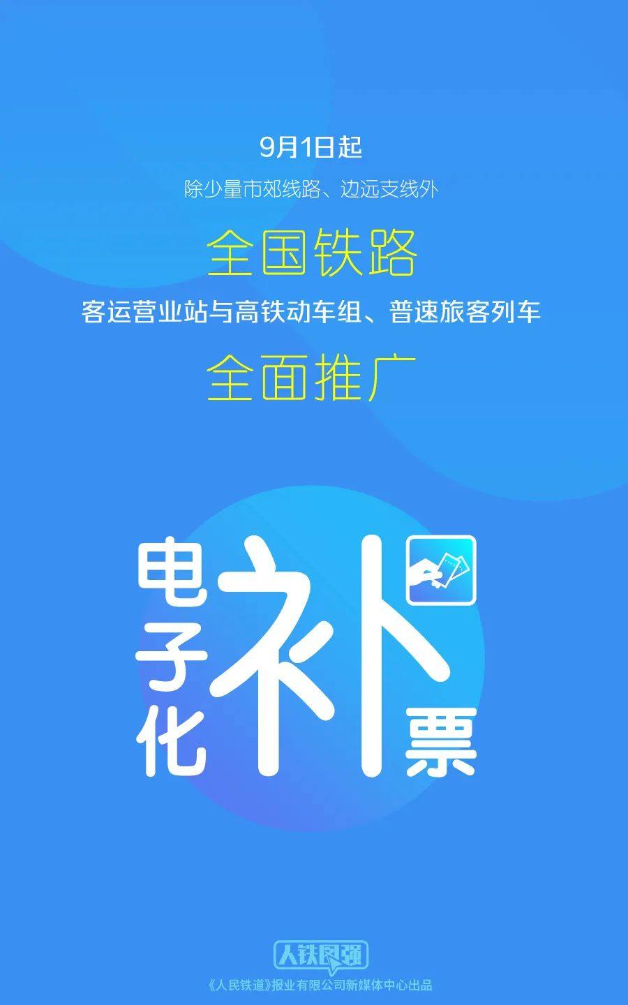 9月1日起,除少量市郊线路、边远支线外,全国铁路客运营业站与高铁动车组、普速旅客列车全面推广电子化补票。