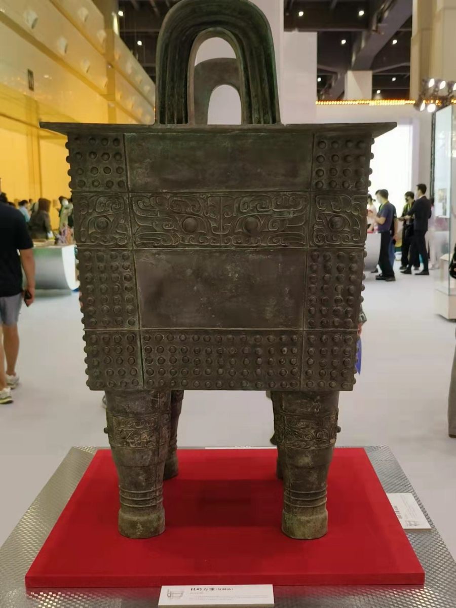 从一层入口进去,各式各样的文物(复制版)就给了我们一个震撼的开场。杜岭方鼎、妇好鸮尊、乳钉纹铜爵……它们被安置在展览台上,静静地等待观众的到来。行走其中,就好像穿过了一个个古老的时代,见证了文明中国的辉煌。
