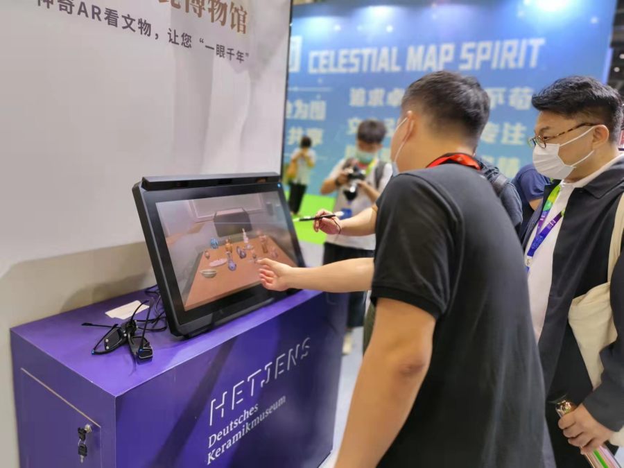 中德人工智能研究院利用“黑科技”打造了3D沉浸式空间漫游欣赏文物展厅。坐在屏幕前,戴上3D眼镜,就可以在敦煌莫高窟、卢舍那大佛、故宫之间畅游。