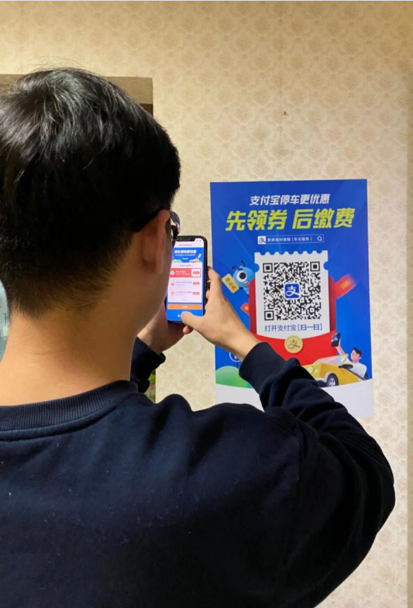 停车消费券领取非常简单,车主只需通过支付宝APP扫一扫停车消费券海报上的二维码,即可领取停车消费券,离场缴费时使用支付宝缴费时自动抵扣。