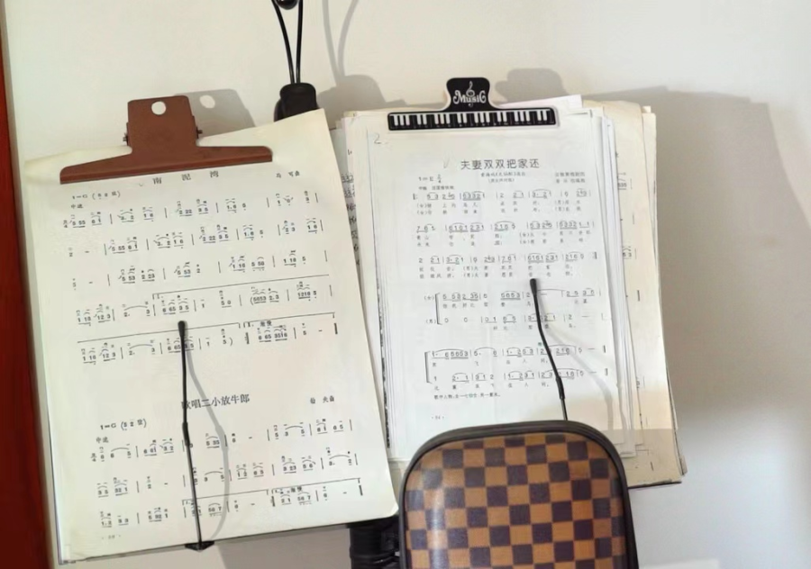 转身出书房,转角处有一个齐腰的琴架,上面架着两首乐谱,其中一首是《南泥湾》,乐谱的右下角微微翘起,有了岁月的痕迹。在琴架一侧竖放着一个格纹的琴包,张磊说这是二胡,“当时学二胡的时候,费了不少精力,揉弦、打弦、换把,拉二胡不仅能活跃思维,还锻炼了身体,现在不拉了,耳朵聋了”,话音落下他指了指耳朵,摇了摇头。