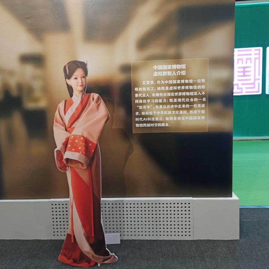 在中国国家博物馆展区,还能看到虚拟数字人“艾雯雯”的身影。“她”是中国国家博物馆的特殊员工,拥有丰富的知识储备,熟知馆藏文物的各种信息,可在线下线上为观众讲解。据这款虚拟数字人的开发企业——凡拓数字的工作人员介绍,不仅有“艾雯雯”,他们还开发设计了虚拟数字员工“班昭”、虚拟博物官“班固”、文物守护数字人“凡菲菲”等多个虚拟数字人,不仅可作用于文化文博领域,还能应用到虚拟数字IP中,提供全方位的数字服务。
