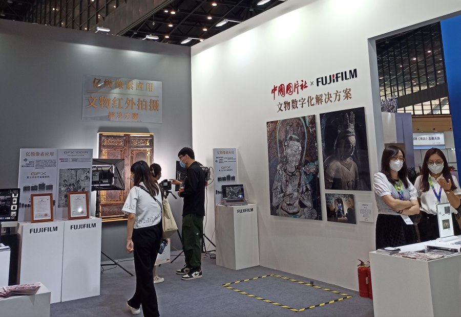 新华社中国图片社展区的工作人员朱先生向记者介绍了“亿级像素 文物数字化解决方案”。他表示,亿级像素应用在文献、档案、文物的数字化以及户外文物的红外拍摄中,能够拍出超高精度的影像图片。借助这些图片,人们可以看到肉眼无法捕捉的细节。但更重要的是,很多文物随着时间的推移会产生不同程度的损伤,将文物进行亿级像素的数字化可以尽可能留存住文物的初始面貌,把最真实的历史留给未来。