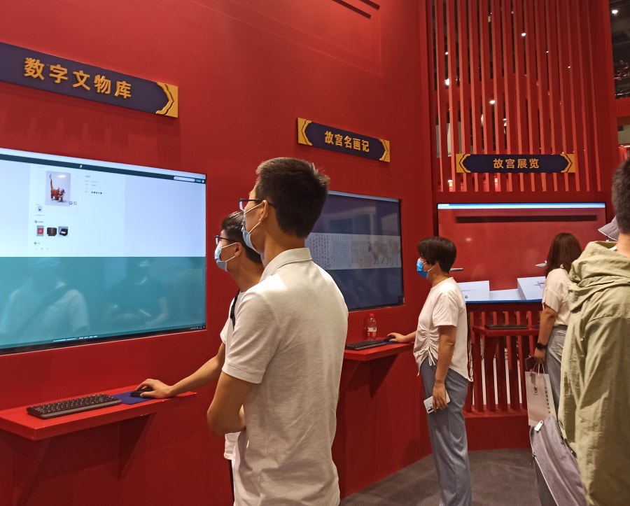 在博博会,我们看到许多博物馆展馆都用屏幕来展示馆藏资源,如中国国家博物馆的“数字展厅”、故宫博物院的“数字多宝阁”“全景故宫”等,观众可通过简单的操作拖拽场景、选中或释放文物,近距离体验各种奇珍异宝和博物馆全景。