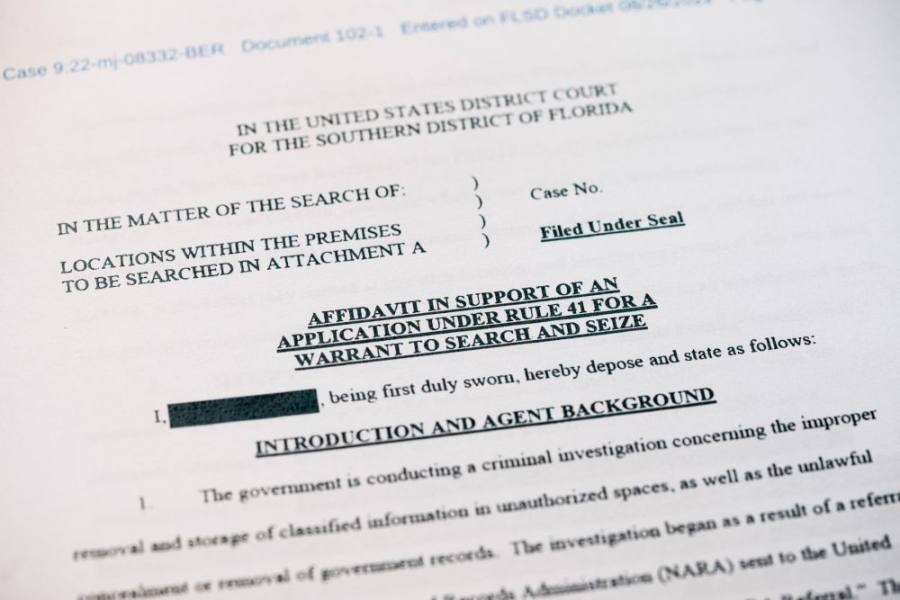 这是8月26日拍摄的美国联邦调查局申请搜查前总统特朗普住所海湖庄园时向法院提交书面证词的部分内容。(新华社记者刘杰摄)