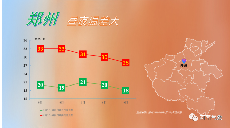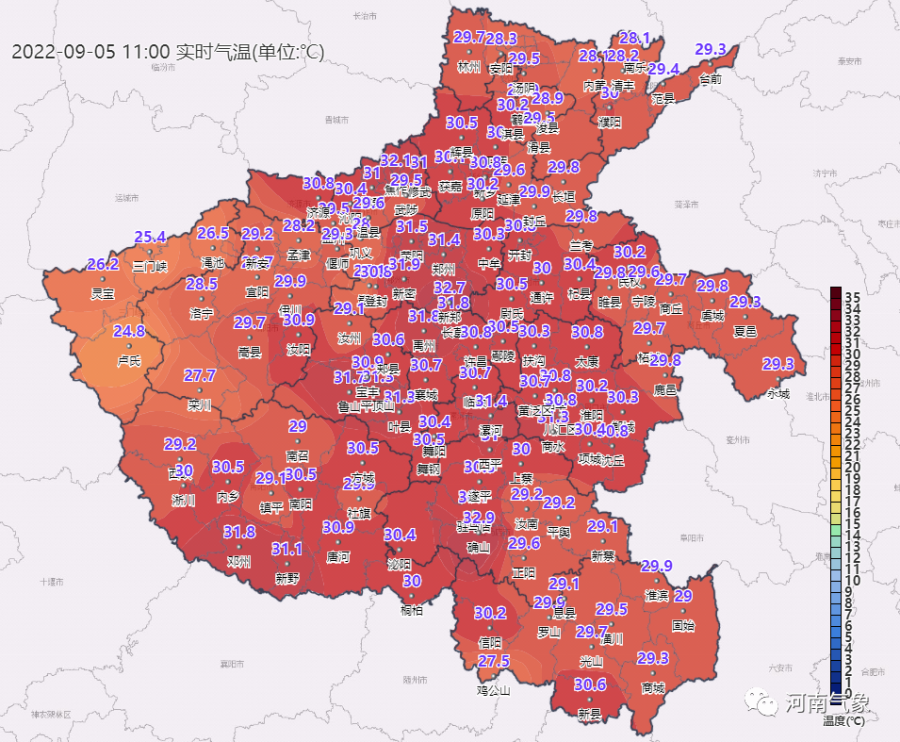 5-7日河南中东部、南部地区最高气温31-33℃,部分县市33-35℃