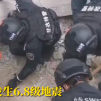 四川泸定县今天发生6.8级地震,当地特警救援小组接到求助,一40多岁的男子被压在垮塌的房子下面。因情况紧急,救援机具又无法到达,救援人员徒手刨土,成功将男子解救出来↓↓