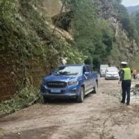 震区的道路沿途的垮塌和落石。 四川森林消防供图