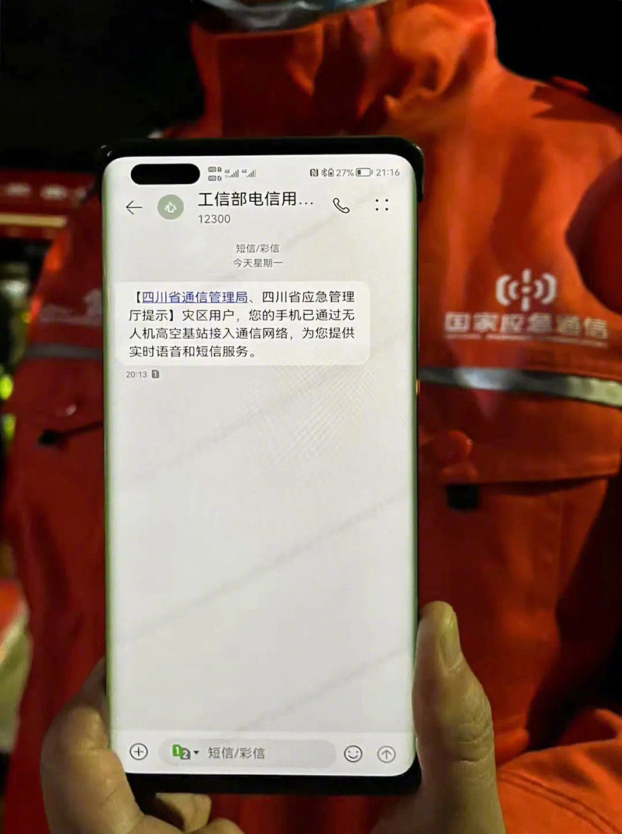 地震发生后,四川省通信管理局和应急管理厅紧急调度腾盾科创双尾蝎无人机飞赴受灾区域,驰援抗震救灾工作,为社会公众实施通信覆盖任务,抢险救灾指挥和受灾群众手机通信陆续恢复。
