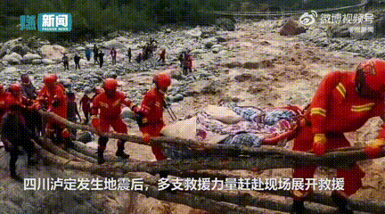 四川泸定发生地震后,多支救援力量赶赴现场展开救援。消防员自制担架,脚踩木桥抬伤员过河,脚下就是滚滚急流。