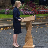 当地时间9月6日,英国新首相伊丽莎白·特拉斯在唐宁街10号首相府外发表就职演说。