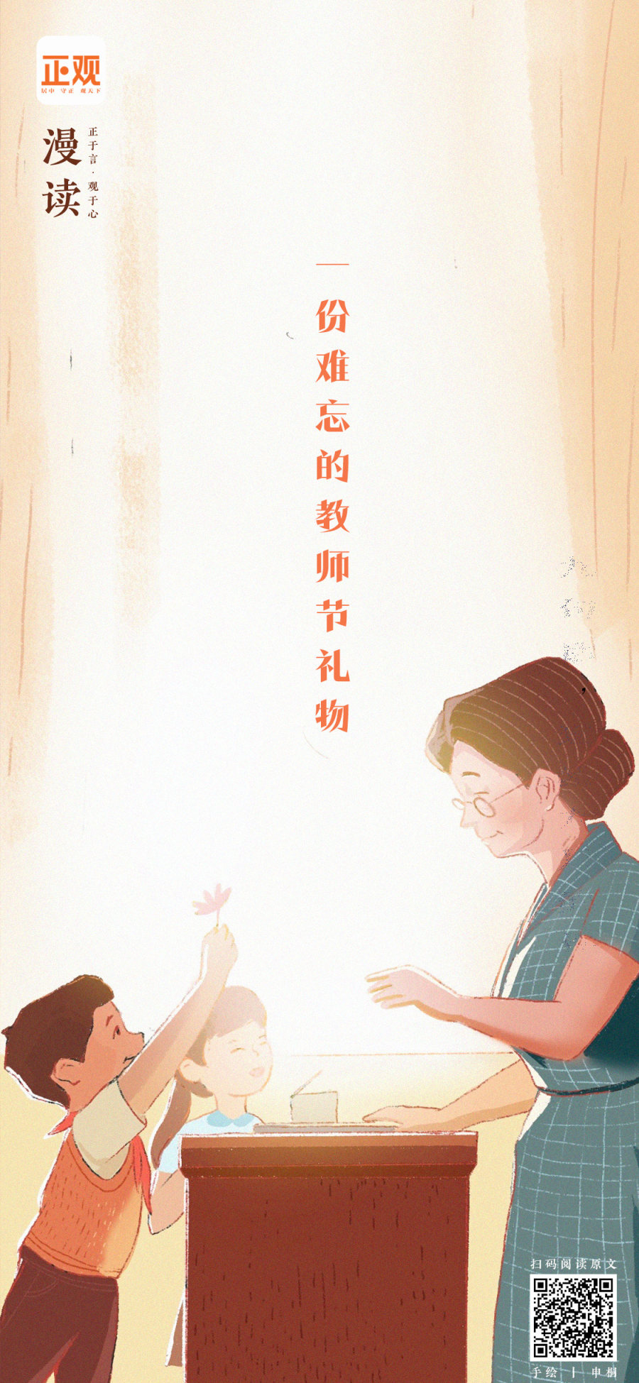 两天后,我收到了这位女生送我的一份教师节的礼物—— 一幅精心绘就的图画,只见上面一棵大树张开厚厚的绿茵,为一棵小树遮风挡雨……旁边一行工工整整的小字跃入眼帘:老师,当了您几年学生,我明白了:原来阳光是这样照亮人生的,雨露是这样滋润禾苗的……老师,谢谢您!祝您教师节快乐!