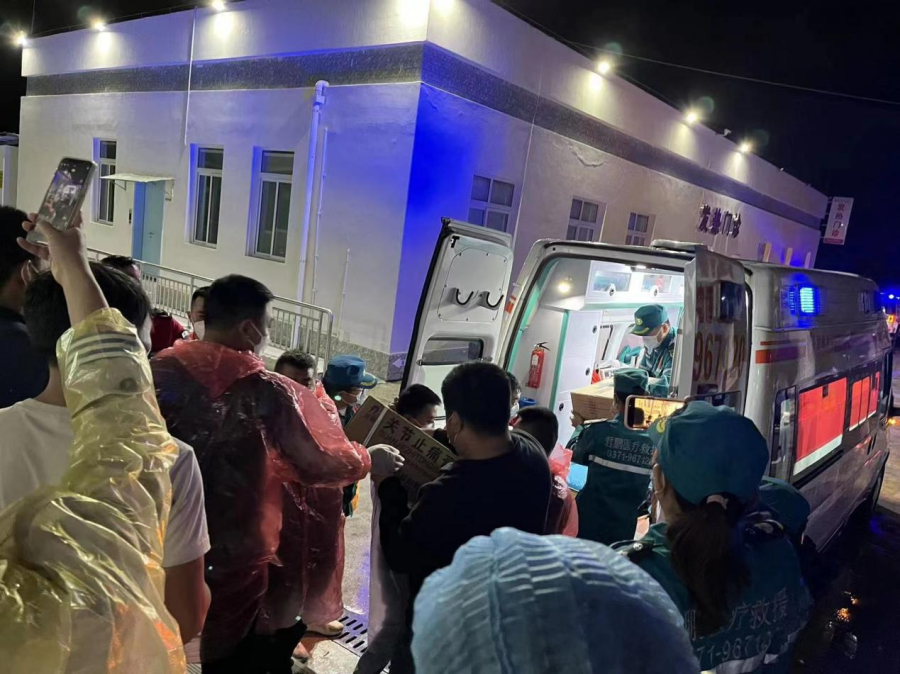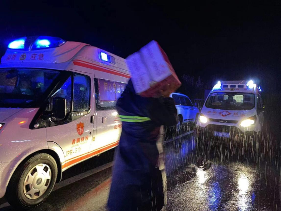 9月6日21时30分,受郑州市红十字会委派,郑州市金水区红十字君鹏爱心医疗服务队紧急集结,25名医护人员分乘1辆指挥车、5辆救护车、1辆物资保障车等共7辆救援车辆,携带价值30余万元的急救药品和应急医疗物资,连夜赶往泸定县支援。