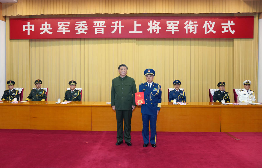 中央军委晋升上将军衔仪式9月8日在北京八一大楼举行。中央军委主席习近平出席晋衔仪式。