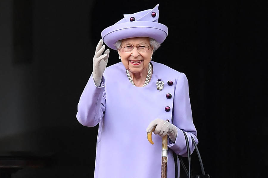 当地时间2022年6月28日,苏格兰爱丁堡荷里路德宫,英国女王伊丽莎白二世在参加武装部队忠诚法案游行时挥手致意。图据视觉中国