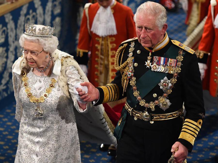 当地时间2019年10月14日,英国伦敦,英国举行国会开幕大典,英国女王伊丽莎白二世出席并发表演讲,查尔斯王子陪同。图据IC photo
