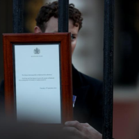 工作人员将英国女王伊丽莎白二世去世的告示安放在白金汉宫大门上