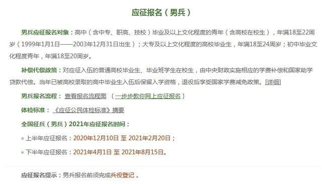 下半年应征报名:普通高中应届毕业生和普通高等学校全日制应届毕业生及在校生,年满18至22周岁。
