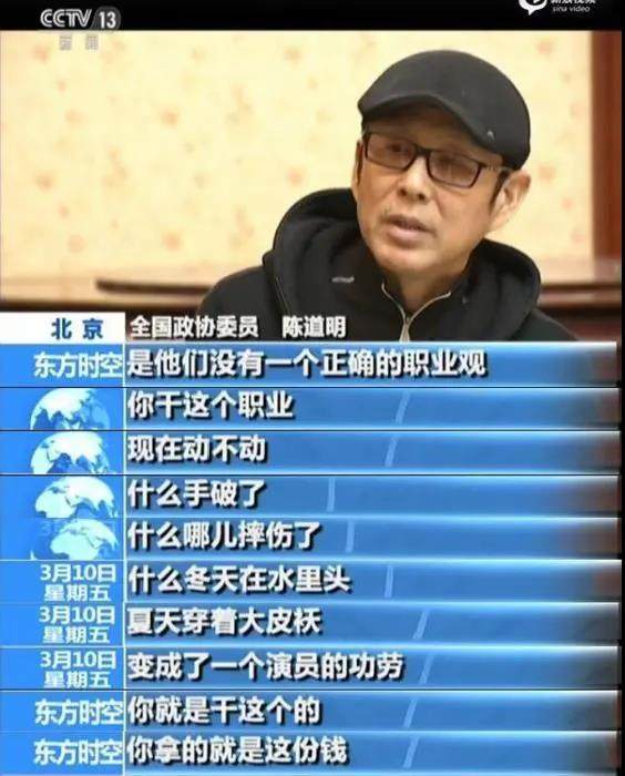 “我到现在一直不能理解为什么老是迟到,有时候全组所有工作人员,200多人都在等一个演员姗姗来迟。我觉得这是最基本的,首先你要对得起你的职业,其次是你要对别人尊重。”