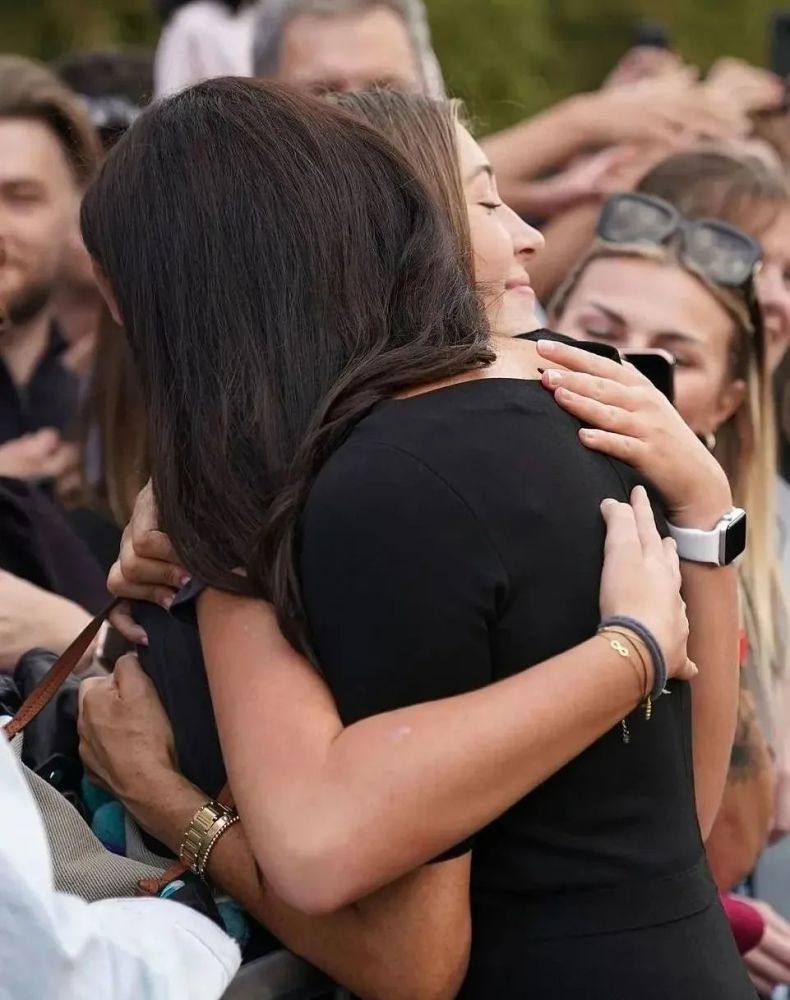 同时,英国民众也给予了非常多的善意,尤其是对梅根。没有人喝倒彩,也没有冷遇,甚至在梅根与一位年轻女孩交谈时,两人还轻轻拥抱了一下。这一时刻被周围许多民众记录了下来。
