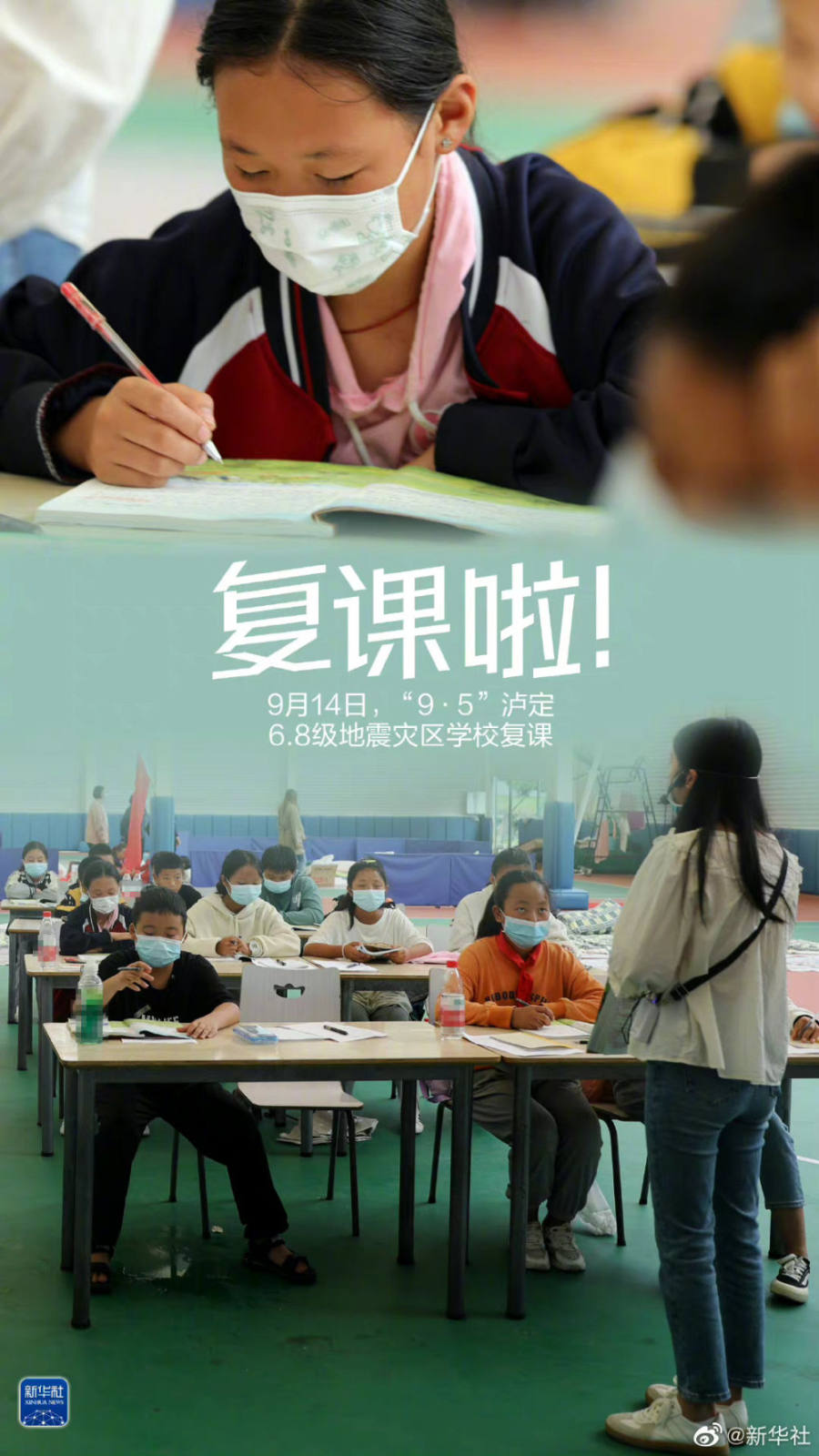 9月14日,“9·5”泸定地震后第10天,泸定县6所小学幼儿园通过搭建帐篷教室、改造食堂、利用功能室等方式恢复线下行课。至此,泸定县(不含海螺沟地区)31所中小学校、幼儿园及中职学校的1.7万名学生,全部实现复课。海螺沟地区学校正在积极筹备复课工作,石棉县三个受灾乡镇学校也正逐步复课。