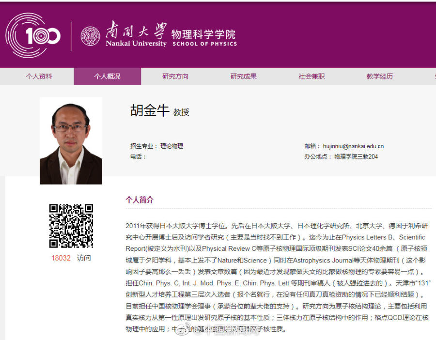南开胡金牛教授简历火了,网友:想让他做自己的互联网嘴替