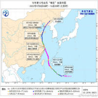 今年第12号台风“梅花”于9月8日上午在西北太平洋生成,进入东海海域后长时间维持强台风强度,14日20时30分在我国浙江舟山普陀沿海登陆(强台风级),15日0时30分在上海奉贤二次登陆(台风级),16日0时在山东青岛崂山区沿海三次登陆(热带风暴级),12时40分在辽宁省大连市金普新区再次登陆,之后逐渐减弱变性为温带气旋,中央气象台16日20时对其停止编号。