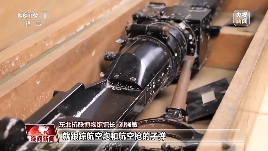 东北抗联博物馆馆长 刘强敏:当这个(机载)航空炮和航空机枪进行发射的时候,旋转式“照相枪”就一同开始启动,就跟踪航空炮和航空枪的子弹,能够看到这种射击最后达成的效果。