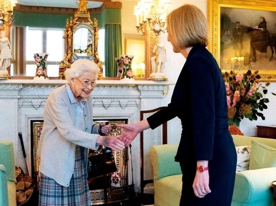 2022年9月6日,英国女王伊丽莎白二世接见英国保守党党首特拉斯,任命其为英国新首相。图/视觉中国
