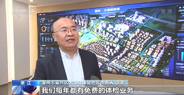 湖州市吴兴区太湖健康城社区负责人 徐涛:针对60岁以上的老年人每年都有免费的体检业务,为70岁的老年人提供上门巡诊,我们实时关注所有居民健康的变化,及时介入并且提供健康管理服务。