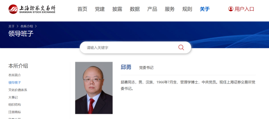 公开资料显示,邱勇,男,汉族,1966年7月生,管理学博士,中共党员。现任上海证券交易所党委书记。