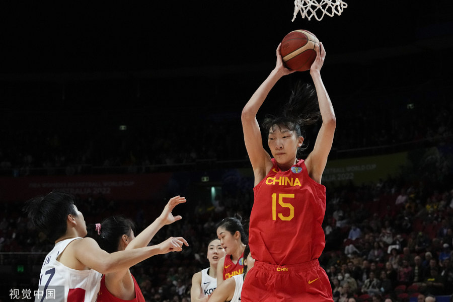 9月22日下午,女篮世界杯首战中国女篮对阵韩国女篮,在韩旭、李月汝两大内线的压制下,中国女篮107∶44大胜韩国队,取得世界杯的开门红。