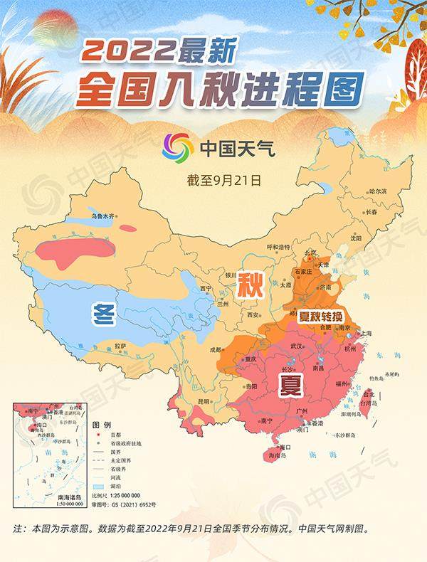 从最新的全国入秋进程图来看,截至9月21日,秋姑娘迈着轻盈的步伐走过我国东北地区、西北地区、华北西部和北部、西南地区大部以及山东半岛,本周末还将南推至华北平原到黄淮一带。