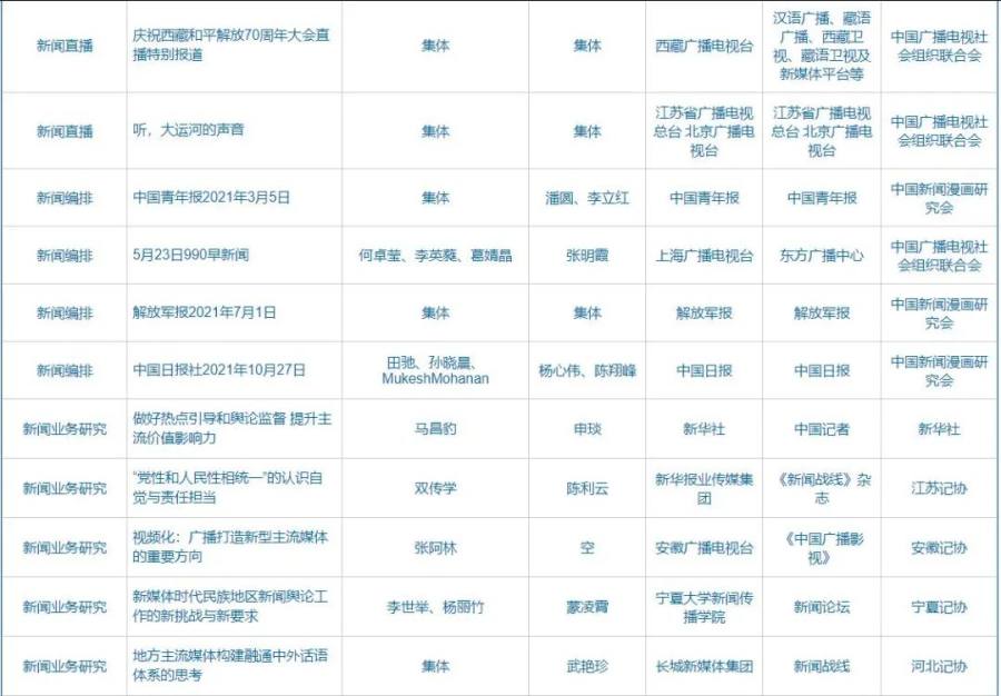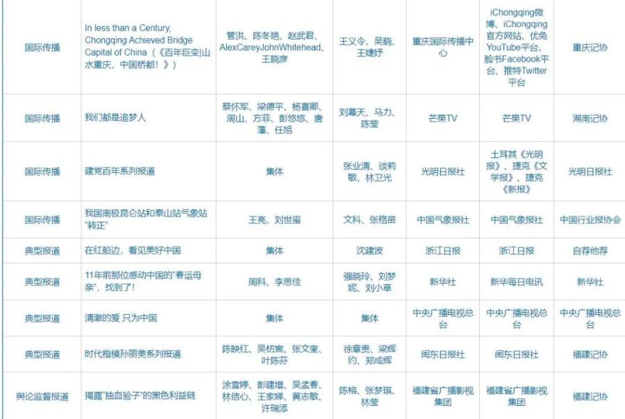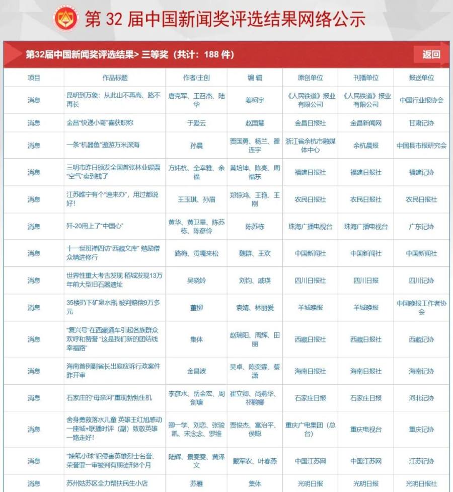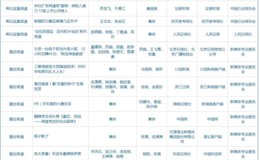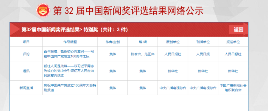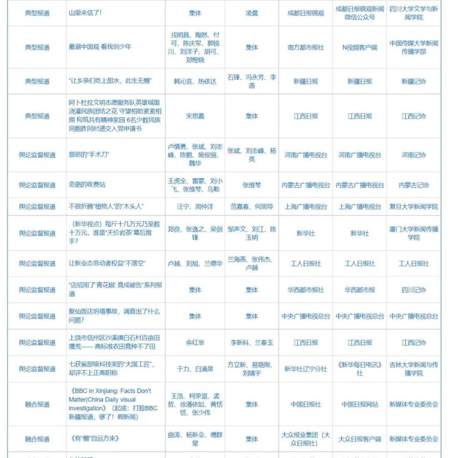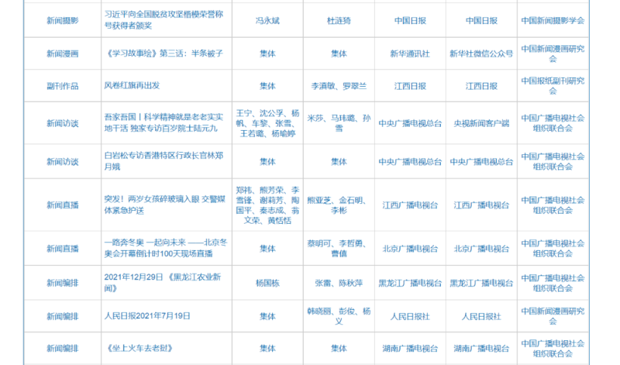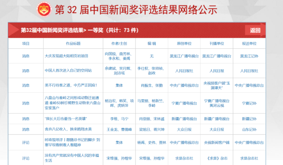 第32届中国新闻奖、第17届长江韬奋奖评选结果公示