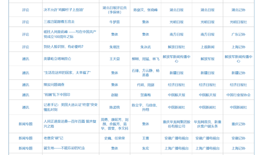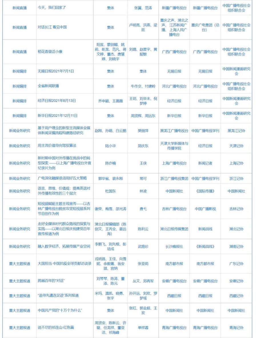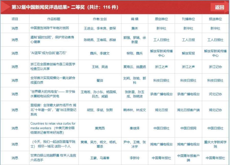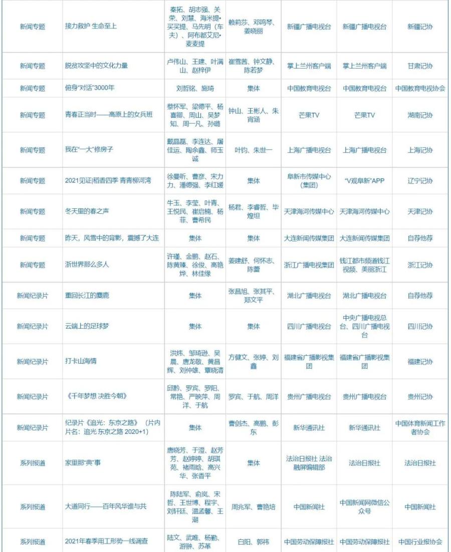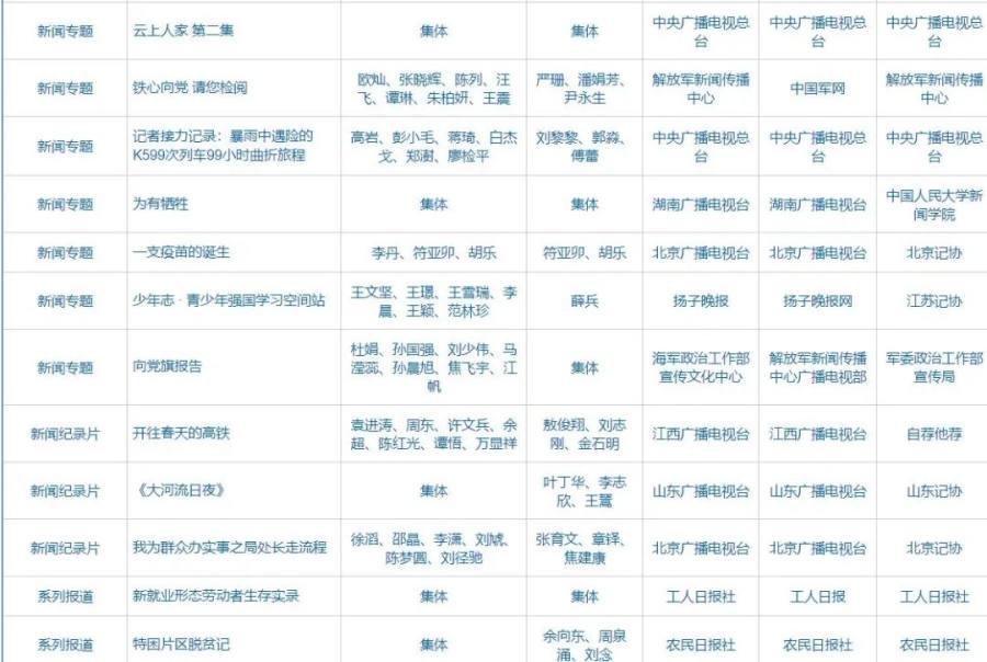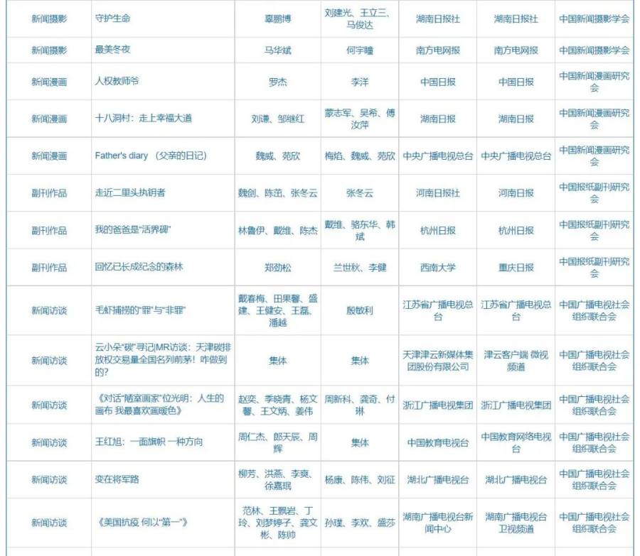 第32届中国新闻奖、第17届长江韬奋奖评选结果公示