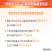 9月23日,省委宣传部举行“河南这十年”主题系列发布会发展改革专场。省发展改革委主要负责人和有关负责同志,围绕“我省经济社会高质量发展”,介绍党的十八大以来取得的成就,并回应公众关切。