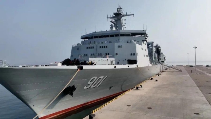 2017年,新型远洋综合补给舰呼伦湖舰入列,从此,航母编队有了一座流动的海上“加油站”。