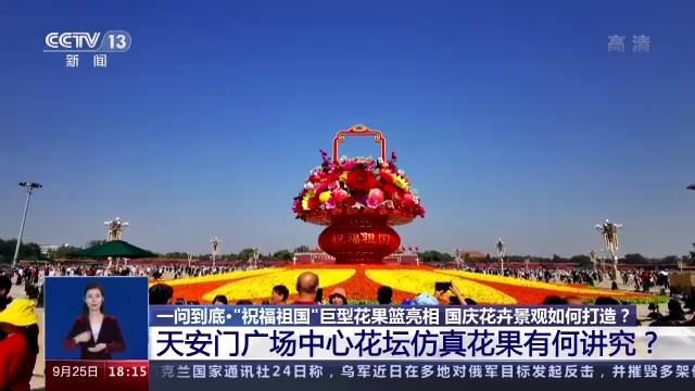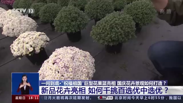 据介绍,今年将有上百个花卉新品种亮相天安门广场以及长安街沿线,来为祖国的生日增添喜庆。那么什么样的花卉可以入选国庆主题花坛?新品花卉必须达到哪些标准才能够使用?国庆花坛的摆放运用了哪些新技术?高达18米的“祝福祖国”巨型花果篮,又是如何做到在短短几天之内就矗立于天安门广场之上的呢?今天(25日)的一问到底,我们就来看一看,国庆花卉景观是如何打造的。