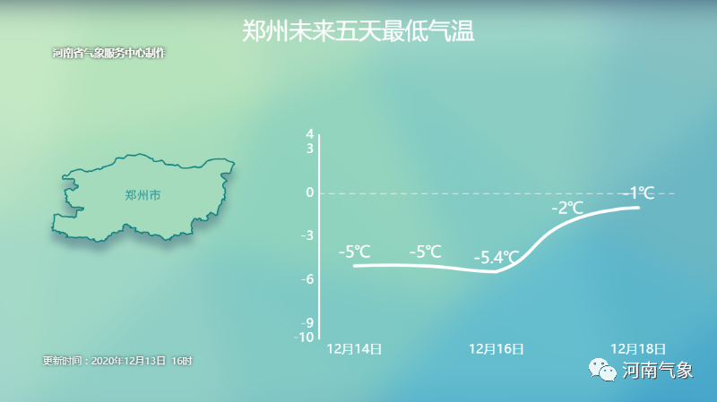 正观记者从郑州市气象部门获悉,本周郑州天气由于受较强冷空气影响,周一至周三,温度较前期下降6℃~8℃。周内最低气温-5℃~-1℃,最高气温2~10℃。周内及昼夜温差较大,需注意防寒保暖。