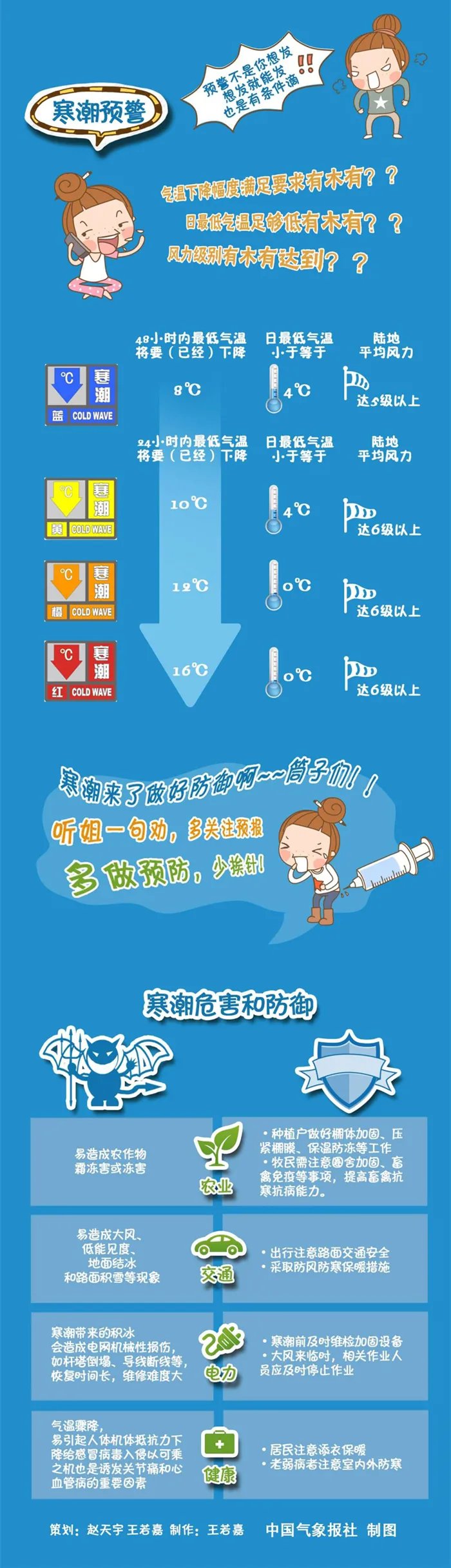 河南省气象台12月13日11时00分发布寒潮蓝色预警:预计未来48小时内,南阳、平顶山、驻马店、信阳、周口、漯河、许昌七地区和洛阳、商丘两地区南部最低气温将下降8度或以上;15日凌晨,上述地区最低气温将下降至零下4度以下.13日白天到夜里,上述地区大部分地区有偏北风5级,阵风6到7级。