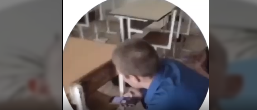 枪声响起时,有学生躲在教室内桌椅下(视频截图)