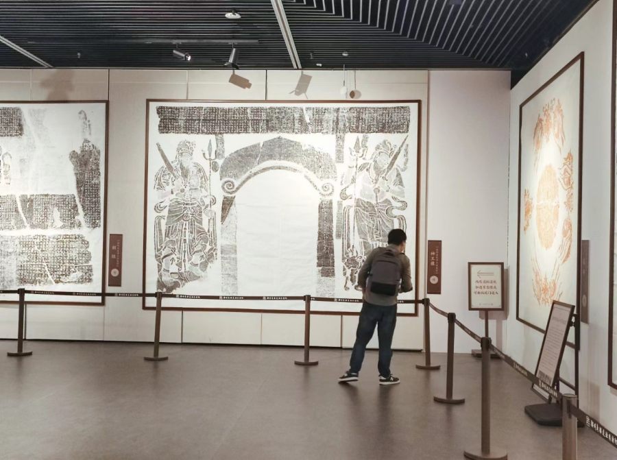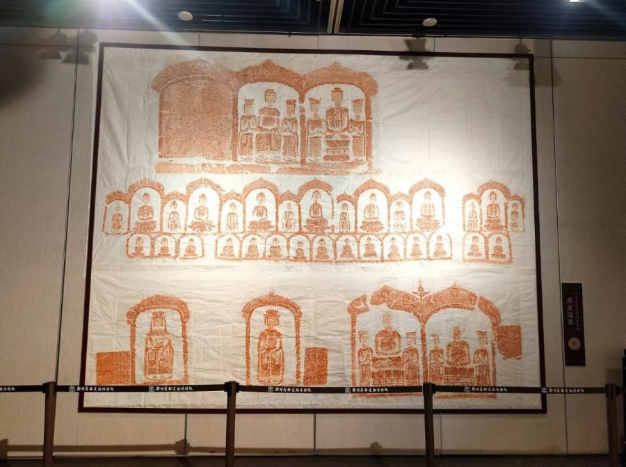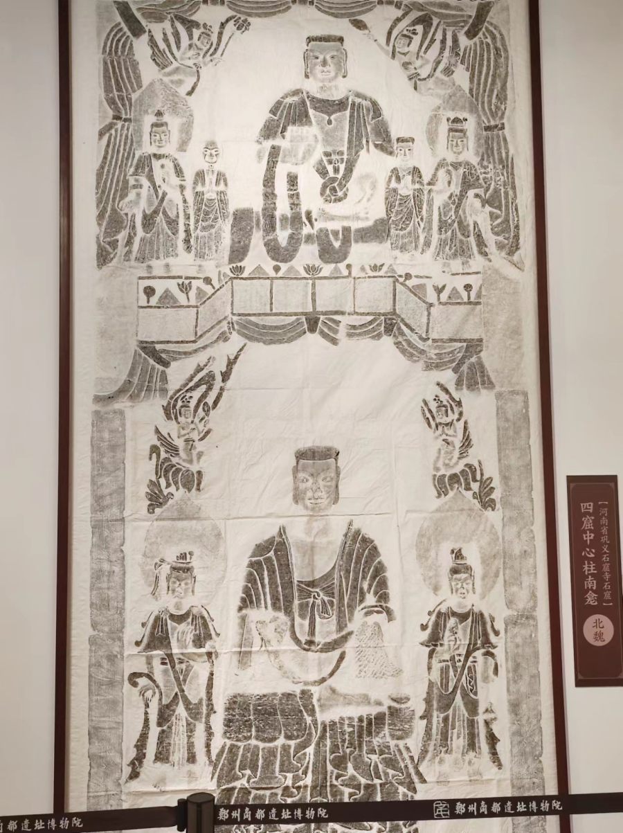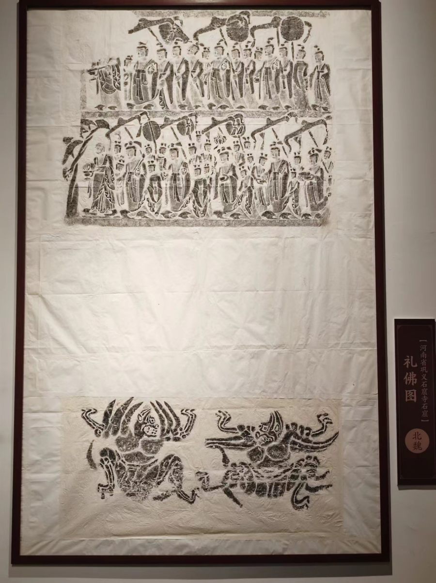 沿展厅左侧进入,可以看到一幅简练生动的杰作——巩义石窟寺石窟拓片。