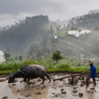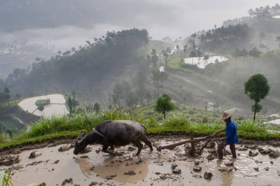 故乡岁月悠悠,故乡难忘的是那些黑牛黄牛,和牲口棚里的老人以及赶车手们,虽然沉默寡言,却是一个个村庄的守护神。再急迫的事,都有了老牛始终一步一个节拍的不紧不慢,拖着牛车在乡村的土路上仿若漫步,它们却承担着最重的重任。即使是拉着满车的沙子,绳套勒进了牛的肩胛骨,而老牛举重若轻,你永远看不到牛在路上畏缩,你也不会听到牛的叹息,内心的强大,让牛车的木车轮毫不迟疑地碾压过泥泞之处。那些岁月的辙印,只要有过乡村生活经历的人,在人生的道路上遇到再大的坎坷,也会像牛每天面对的辙印一样,永远不会退缩,而是一如既往地蹚过生活的一道道难关。