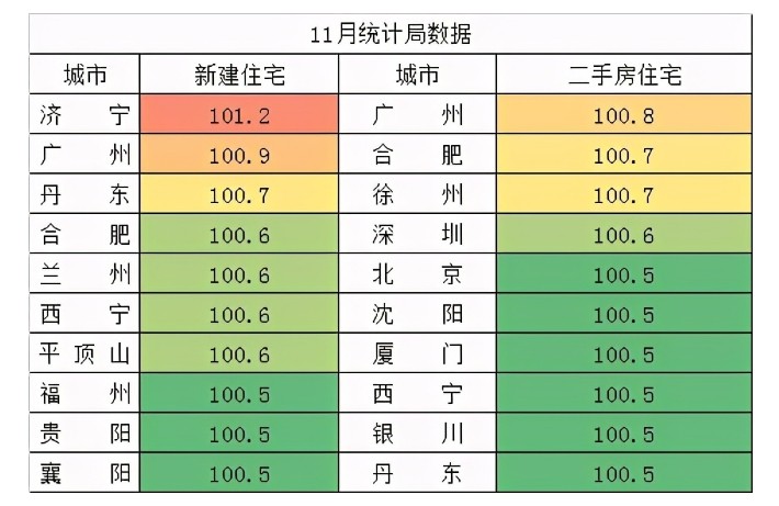 由于一手房存在限价、限签的价格管制政策,二手房价格更真实。11月,广州、合肥、徐州、深圳、北京二手房价环比涨幅排在前五位,其中,广州、深圳、北京分别涨0.8%、0.6%和0.5%。张大伟认为,这些城市基本都是之前调控被明显抑制的城市,最近在全国热点城市包括深圳等上涨的影响下,房价复苏企稳。