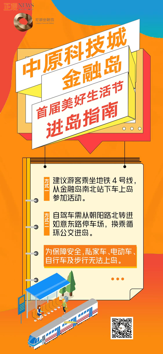 十一假期的当天,金融岛就游人如织,“美好生活节”一开幕就受到了郑州市民的喜欢,成为朋友圈“国庆打卡一游”的热门地点。所以,在上岛之前,为了避免遇到烦心的拥堵问题,先贴心地送上进岛指南:建议游客乘坐地铁4号线,从金融岛南北站下车上岛参加活动;自驾车可从龙湖内环路与如意东路交叉口,北转进如意东路临时停车场,换乘循环公交进岛;为保障安全,私家车、电动车、自行车及步行无法上岛。