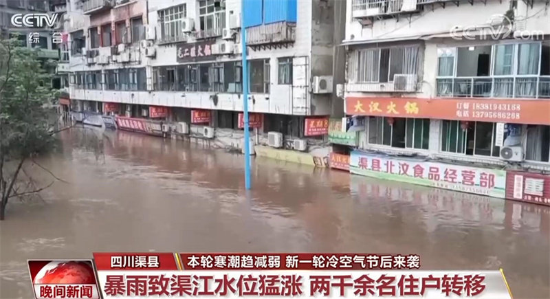 受上游持续暴雨天气影响,四川达州渠县的渠江水位猛涨。截至10月5日上午9点,渠江段的最高洪水位达到15米,比常年平均水位4.2米高出了10米多。渠县县城渠江岸边的部分道路进水,当地干部帮助转移群众,截至10月5日14点,2000多住户已转移至安全地带。