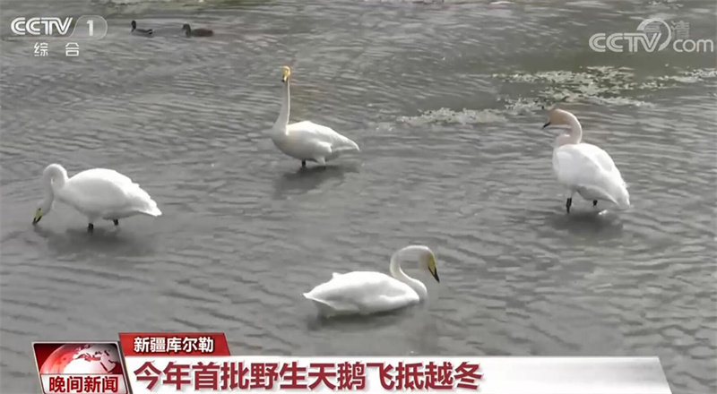 伴随着天气的转冷,近日,首批越冬的野生天鹅陆续飞抵新疆巴州库尔勒市。穿城而过的孔雀河泛着粼粼波光,十多只越冬的野生天鹅结伴游曳,一起嬉戏、觅食、追逐。近年来,随着生态环境不断改善,野生天鹅已连续17年选择库尔勒市作为越冬地。