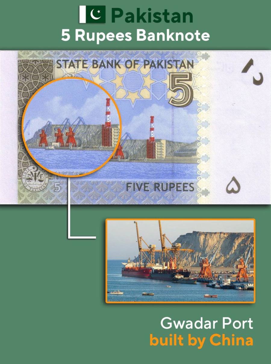 ▲巴基斯坦面额5卢比纸币——瓜达尔港。