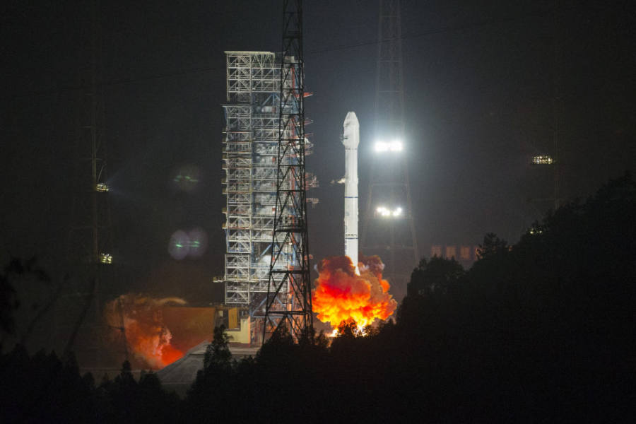 ▲2017年12月11日零时40分,中国在西昌卫星发射中心用长征三号乙运载火箭,成功将阿尔及利亚一号通信卫星发射升空,卫星进入预定轨道,发射任务获得圆满成功。新华社记者琚振华摄