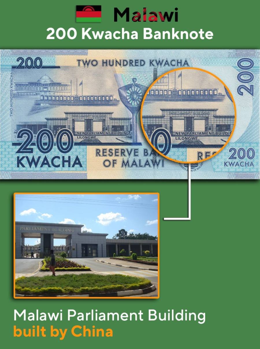▲马拉维面额200克瓦查纸币——议会大厦。